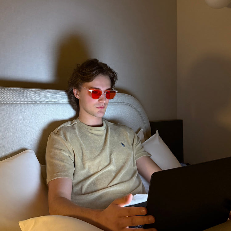 NÜRASHADES utilise la technologie Red-Shield Optics™, des verres rouges calibrés pour bloquer presque entièrement les longueurs d’onde bleu-vert qui stimulent les cellules ipRGC — celles qui maintiennent votre cerveau en mode “veille active”.